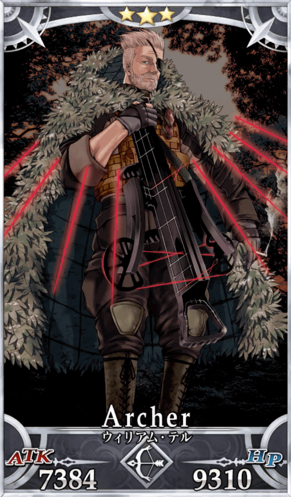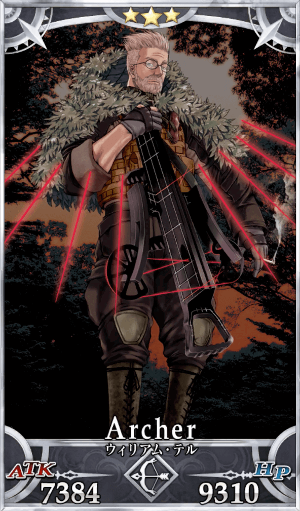 ウィリアムテル(FGO)の性能評価を掲載。宝具やスキル、強い点や弱い点をわかり易く解説している。Fateキャラのボイス(セリフ)や最終再臨イラスト、元ネタ情報も掲載しているので、FGO(フェイトグランドオーダー)のウィリアム・テル育成の参考にどうぞ。