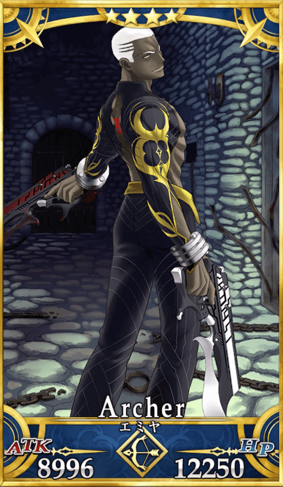 | 身長/体重:187cm・78kg 出典:Fate/Grand Order 地域:日本 属性:混沌・悪 副属性:人 性別:男性 「正義の味方が悪行を良しとするのか、だって? 当然だろう。中身が腐っているからな、俺は」 |
