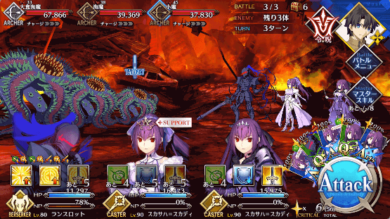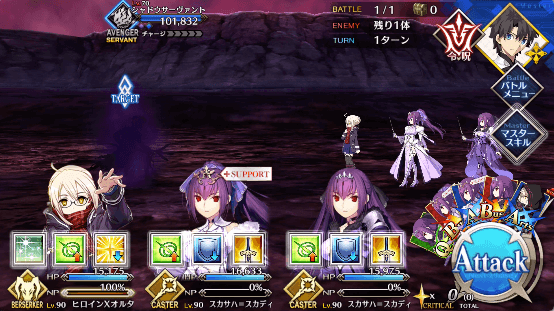 | 宝具 | ・Lv敵単体に超強力な防御力無視攻撃<1,200%~1,800%> ・OC確率でチャージを減少<80%~100%> |