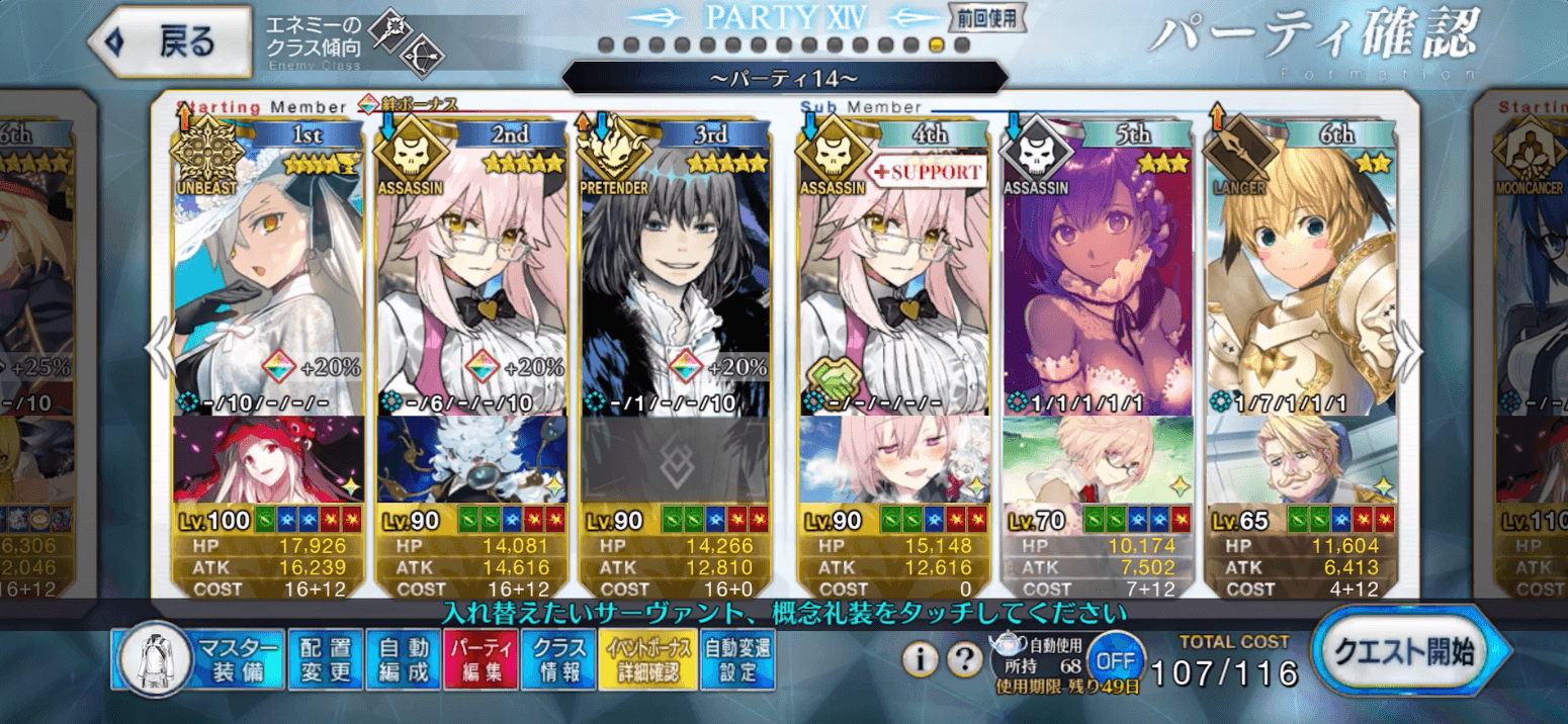 | 動き | ・S3は封印 ・味方の補助タイミングはNP50%装備時と一緒 |