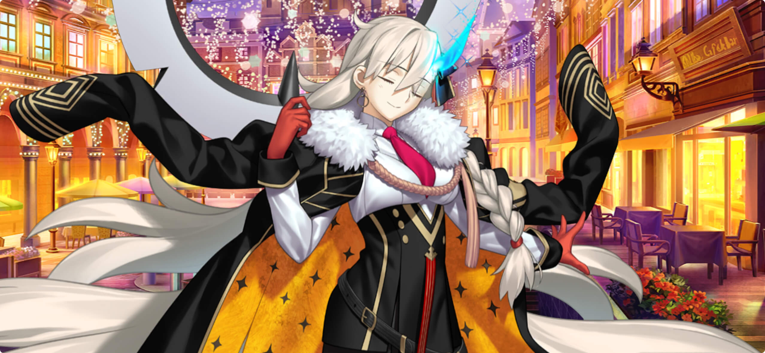 | スキル1 | ①自身のスキルチャージを2進める(-) ②宝具威力をアップ(3T/20%~30%) ③自身を除く味方全体にコマンドカード選出不能状態を付与(1回/1T) ④コマンドカードを配り直す(-) ⑤スターを獲得(30個~50個) ⑥敵全体に宝具封印状態を付与(-) ⑦HP回復量をダウン(3T/30%~50%) |