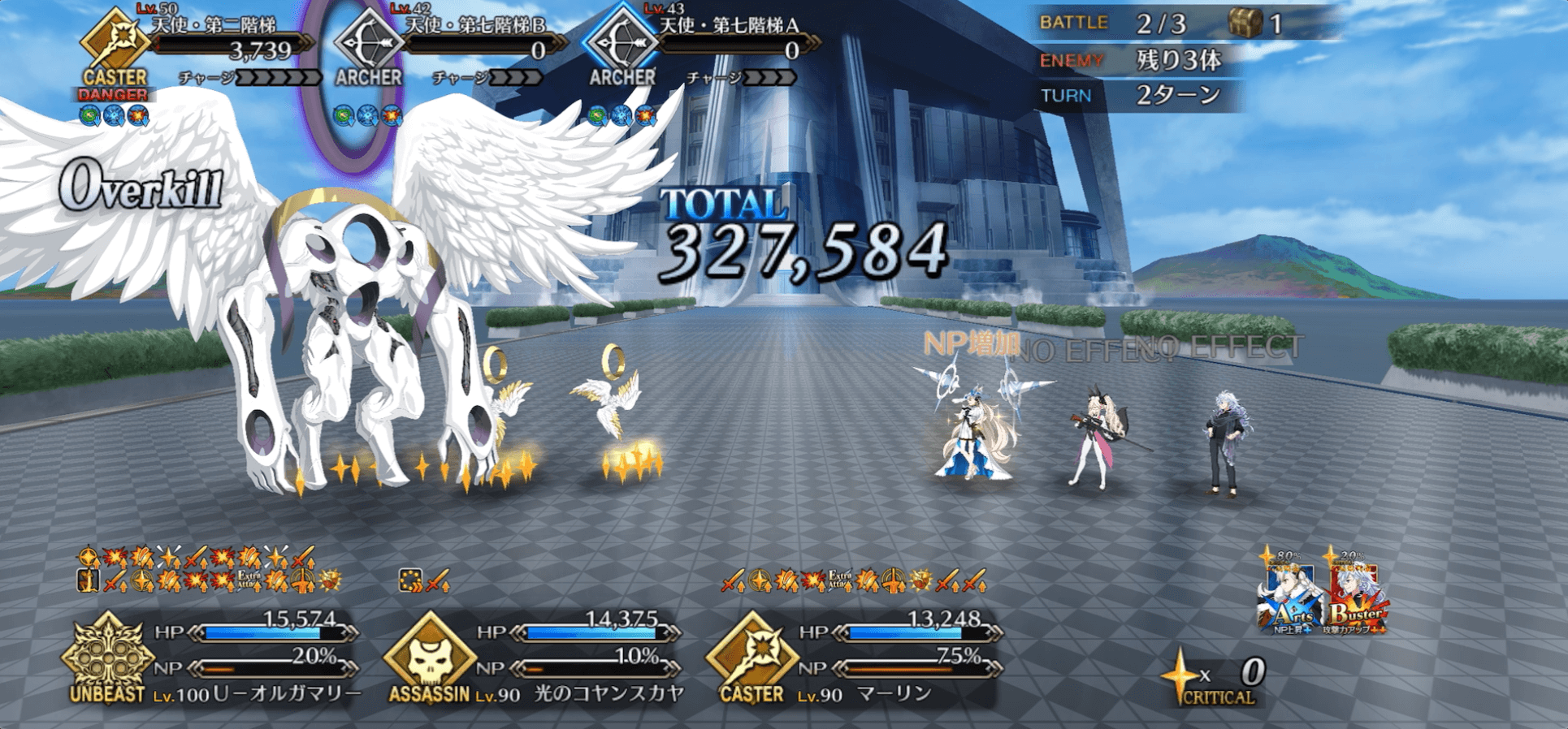 | スキル2 | ①自身のNPを増やす(10%~20%) ②味方全体のNPを増やす(20%~30%) ③OCを1段階引き上げる(1回/3T/100%) |