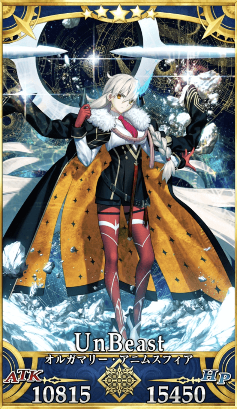 オルガマリーのクラスは「アンビースト」となり、オルガマリー専用のクラス相性を持つ。概ねルーラーと同じで防御相性有利が多い。ただし、フォーリナー相手には、お互いが攻撃有利かつ防御不利となる。