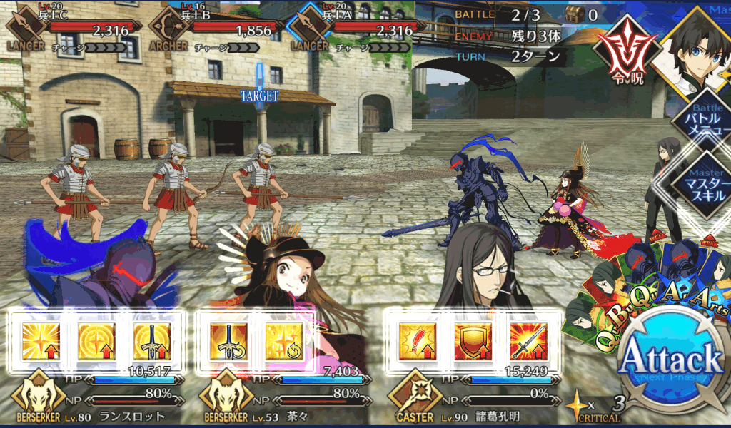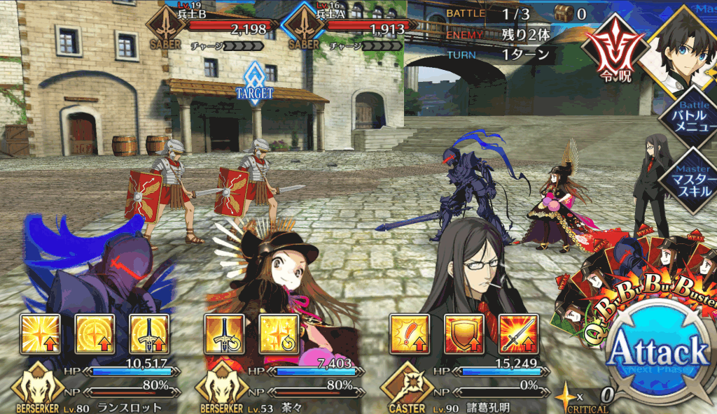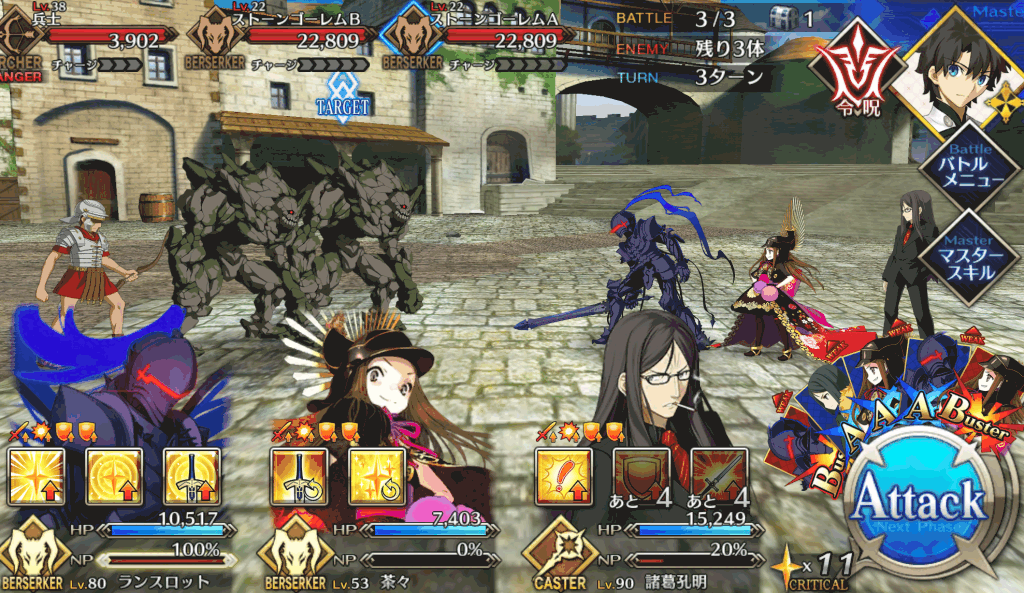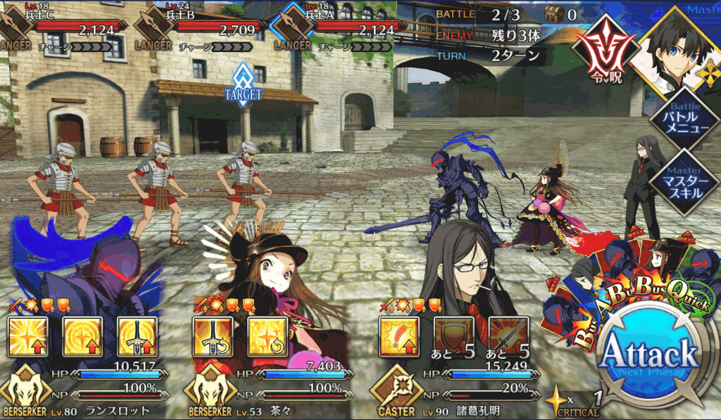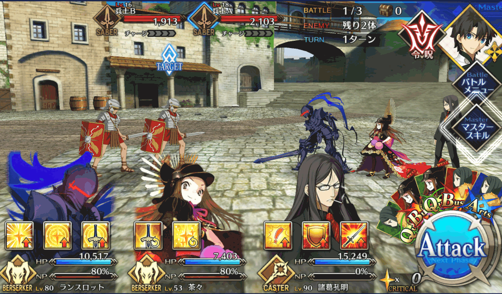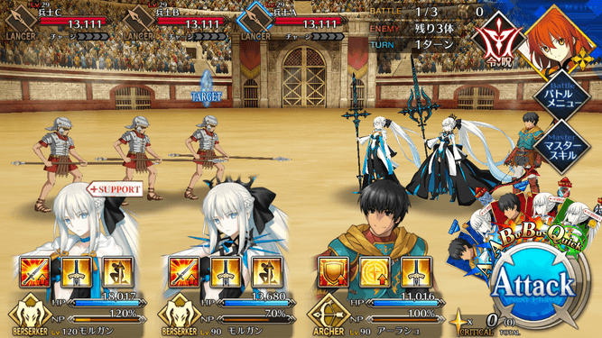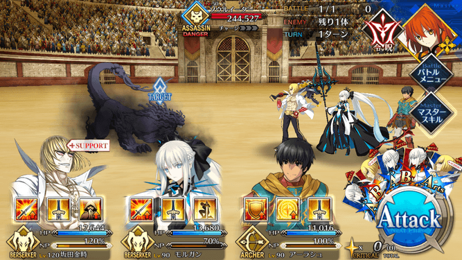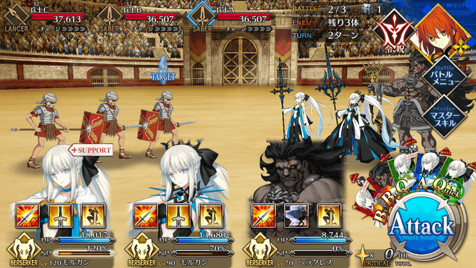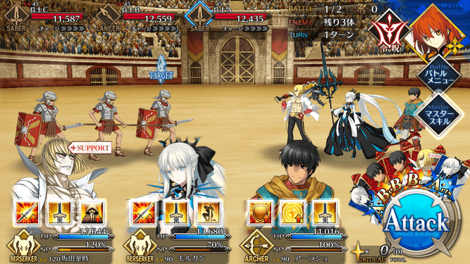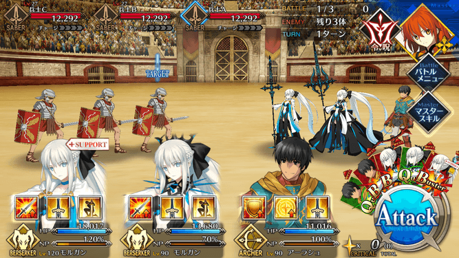 ・在りし日の栄光[B]解放 ・自身のB性能アップ(1T/30~50%) ・HPが減少(500)[デメリット] ・CT 5~3 ・宝具ランク[C]→[C+] ・防御力ダウンが追加(3T/30%) |