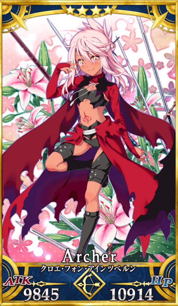 クロエ(FGO)の性能評価を掲載。宝具やスキル、強い点や弱い点をわかり易く解説している。Fateキャラのボイス(セリフ)や最終再臨イラスト、元ネタ情報も掲載しているので、FGO(フェイトグランドオーダー)のクロエ・フォン・アインツベルン育成の参考にどうぞ。