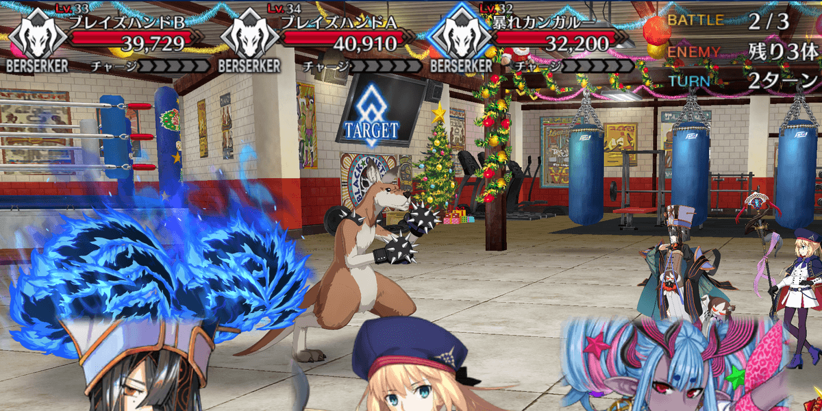 | ①Lv敵単体に超強力な攻撃<600%~1,000%> ②宝具封印を付与(1T)<-> ③OCやけどを付与(5T)<1,000~3,000> |