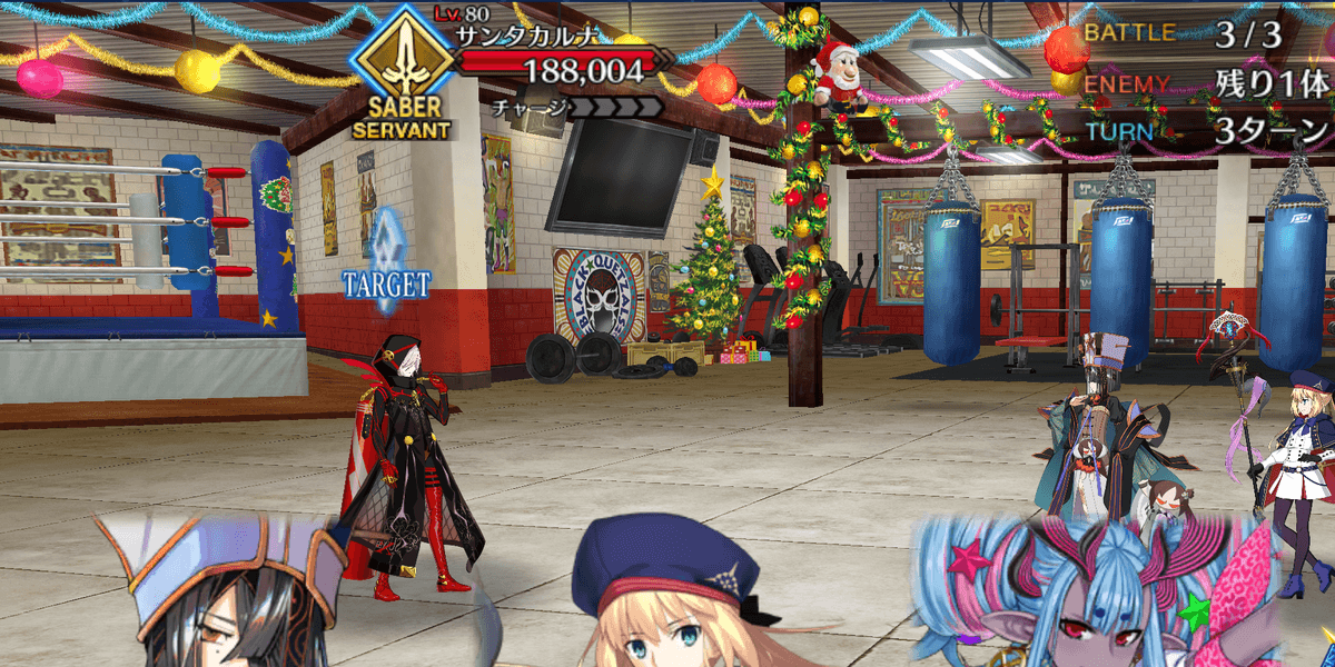 | スキル | ①味方全体の攻撃力をアップ(3T/10.5%~21%) ②スターを獲得(15個~25個) ①味方単体にガッツ状態を付与(1回/3T/1,000) ②バスター性能をアップ(3T/20%~30%) ③NPを増やす(20%~30%) ④スキルチャージを1進める(-) ①自身のスター集中度をアップ(1T/300%~600%) ②クリ威力をアップ(1T/30%~50%) ③NPをチャージ(20%~30%) |
