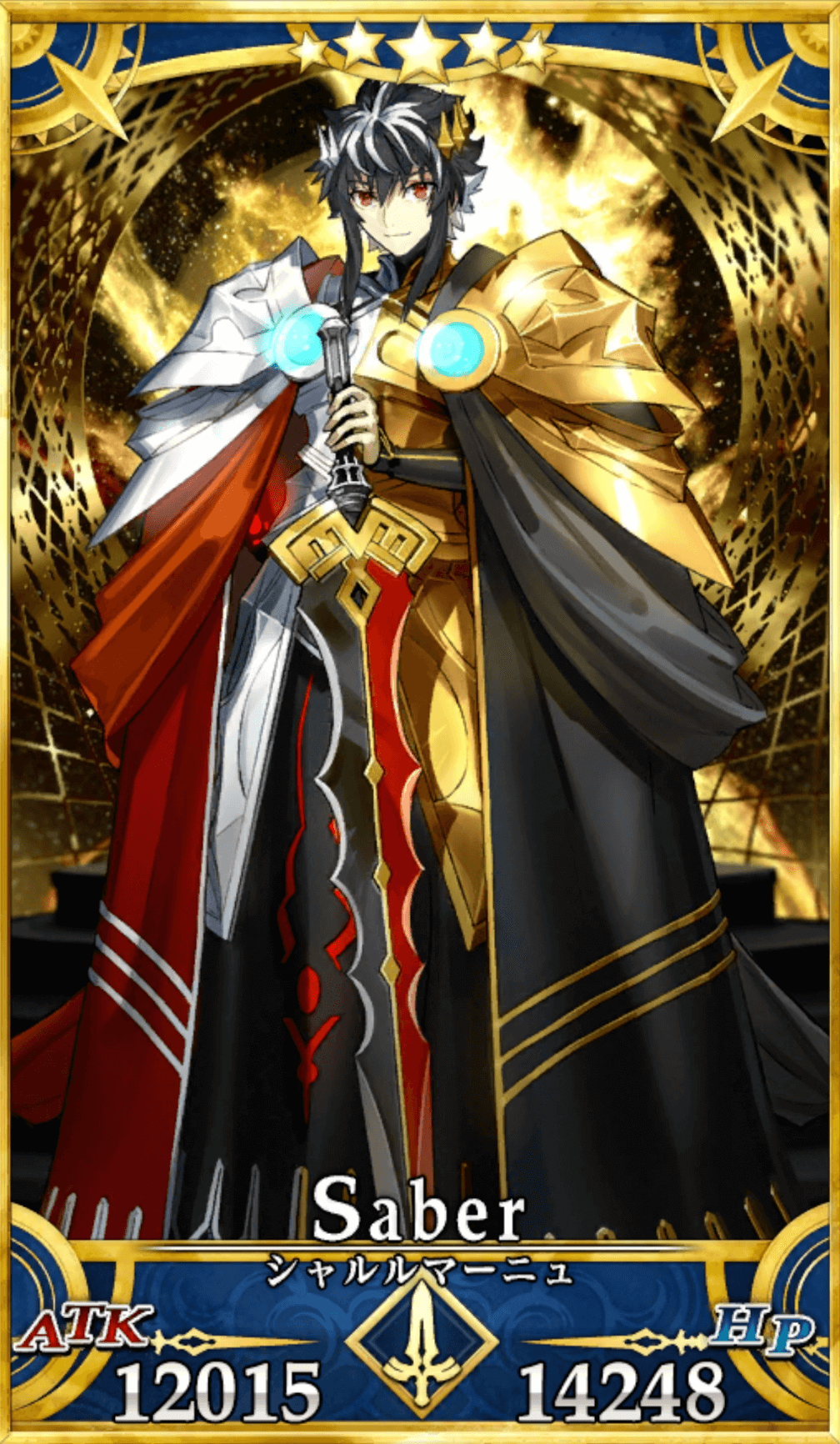 | 彼方からの贈り物として顕現した シャルルマーニュ十二勇士の王。 西ヨーロッパの始祖であり、一般的にはカール大帝と いう名称の方が馴染み深い。 王と呼ぶには少々威厳を放置しがちで、カッコ良いか どうかを基準とする、天真爛漫な若者。 |