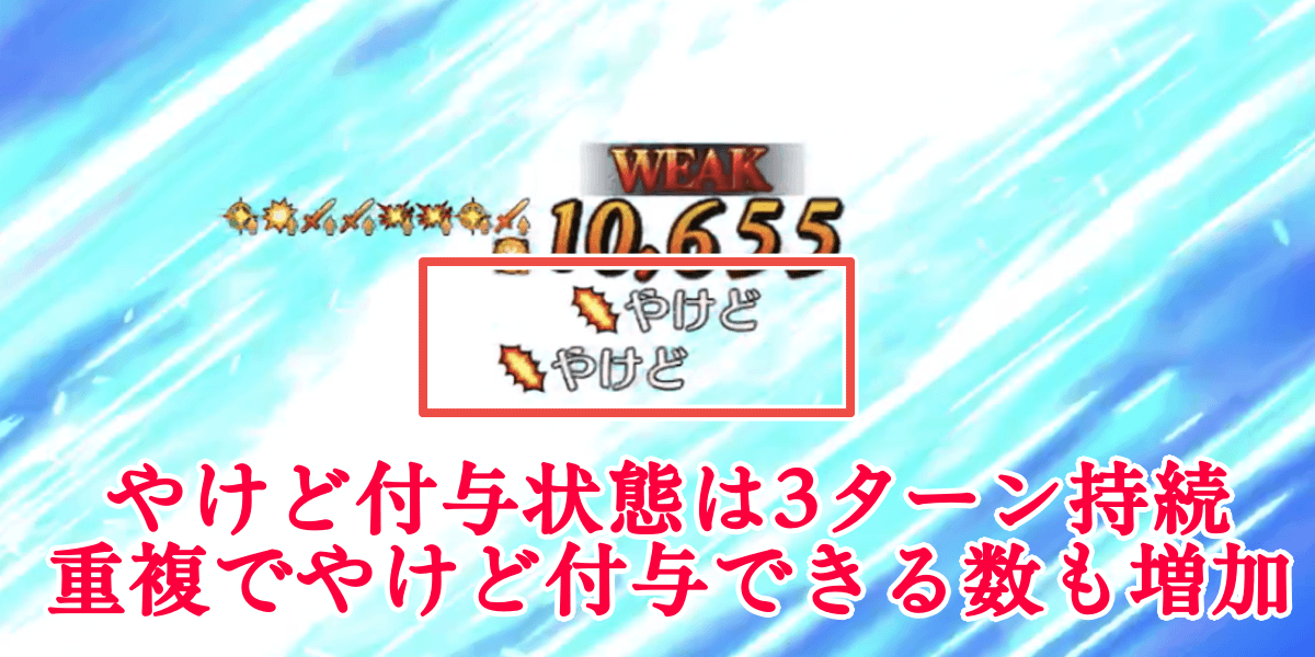 | やけどは自身の攻撃で敵に付与可能 |