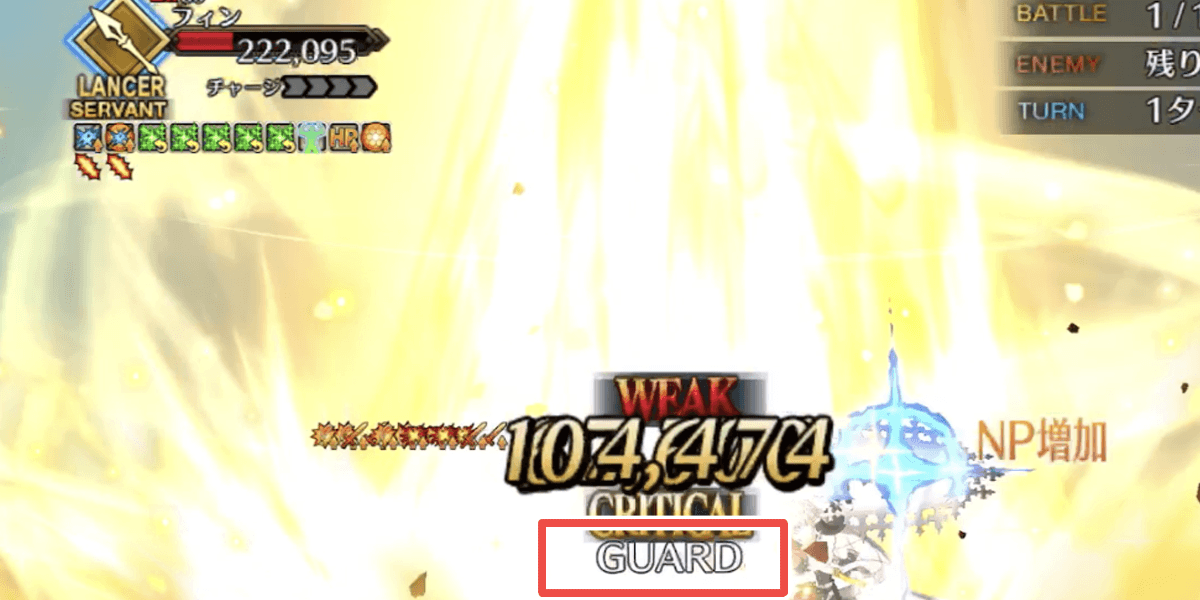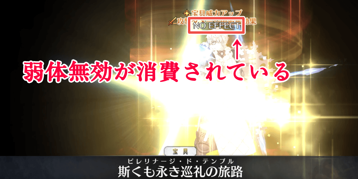 ・範囲内の味方全体に防御力アップ付与 ・一定時間ごとにHP回復状態を付与 ・自身に弱体無効状態を付与(1回) ・範囲内のターゲット単体に一定時間ごとにNPが減る状態を付与 ・自身に一定時間ごとにNP獲得状態を付与 ・範囲内の味方単体にガッツ状態を付与(1回) ・被ダメージカット状態を付与(3回) ・強化解除耐性をアップ |