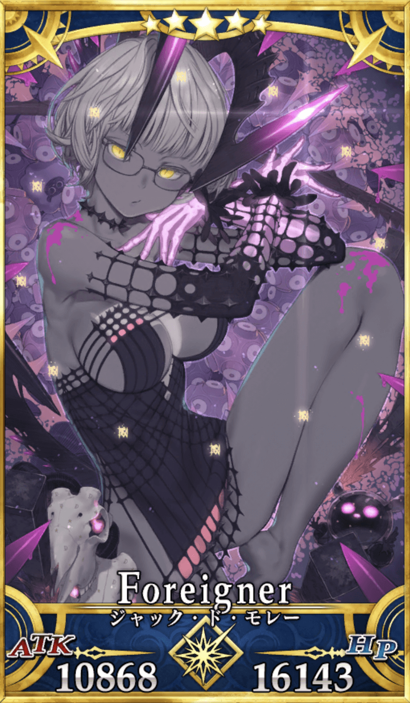 ジャック・ド・モレーは、星5セイバーとしてアーケードに実装されている。アーケード版のジャック・ド・モレーは男性で、声優は中島ヨシキさんが担当されている。