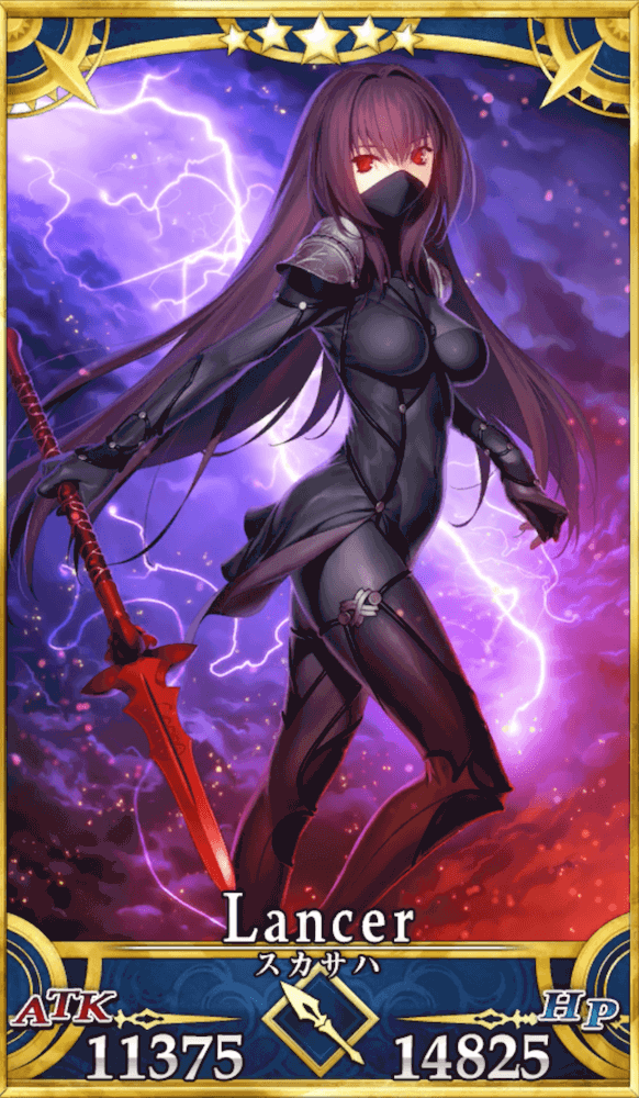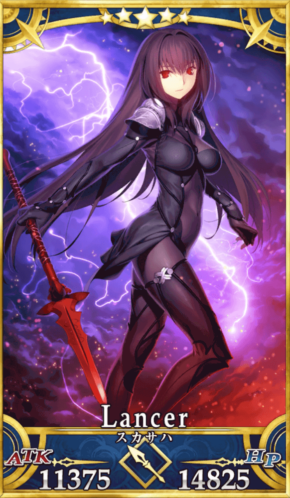 スカサハはクイック宝具の瞬間火力が強みの、単体ボスに特化したアタッカーである。特に特攻対象の神性や死霊相手に強く、有効範囲を考慮すると全サーヴァントの中でも高火力を発揮する機会が断然多い。また、確定で付与するスタンも強力であり、高難易度でも重宝する。