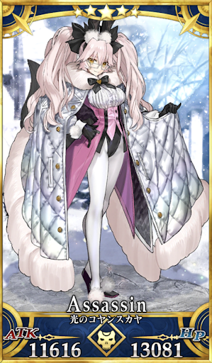 | 空気を読める女として、6周年を記念して一足先に カルデアに現れた謎のサーヴァント。 その力、その魅力、いまだ謎に包まれたS・P・Y。 どこからどう見てもカルデアと敵対していたコヤンスカヤだが、もうビースト幼体ではなく、ただの万能美人秘書(光)です、と本人は語っているが……? |