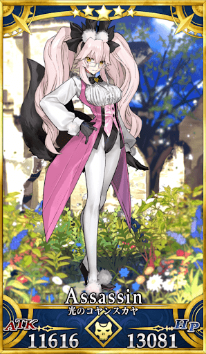 | ○騎乗:B 時代・流行に乗る女としてそれなりにイケてる。 ○単独行動:EX 驚くべき事に、そして恐るべき事に、光のコヤンスカヤはマスターを必要としない。 マスターの命令に従う理由はただ一点。『人間とは違い、約束(契約)は破らない』というプライドだけである。 ○単独顕現:C SPYとしての証。ドリフター能力。 ビースト属性を持つコヤンスカヤはいかなる異世界・異常識であろうとお邪魔できる。 ビースト幼体だったコヤンスカヤはこのスキルでロストベルトだろうと白紙化地球だろうと気軽に転移できたが、現在は大きくランクダウンした為、前ほどお気軽に転移はできないようだ。 ○変化:A 本来は防御力をあげるものだが、コヤンスカヤはSPY活動の為にこれを愛用する。 ○イノベイター・バニー:A 繁栄の為に編み出されたシステムをよりよく使い、 人類のみを苦しめる(酷使させる)循環を創り上げる 権能……とドヤ顔で語るが、ただの趣味、才能である。 |