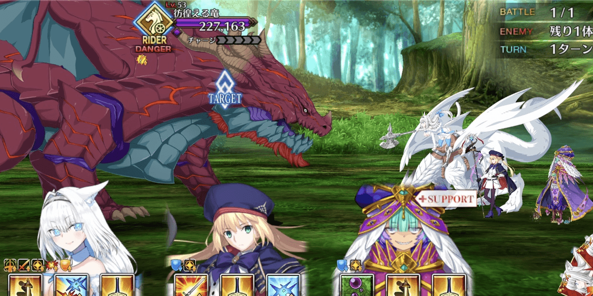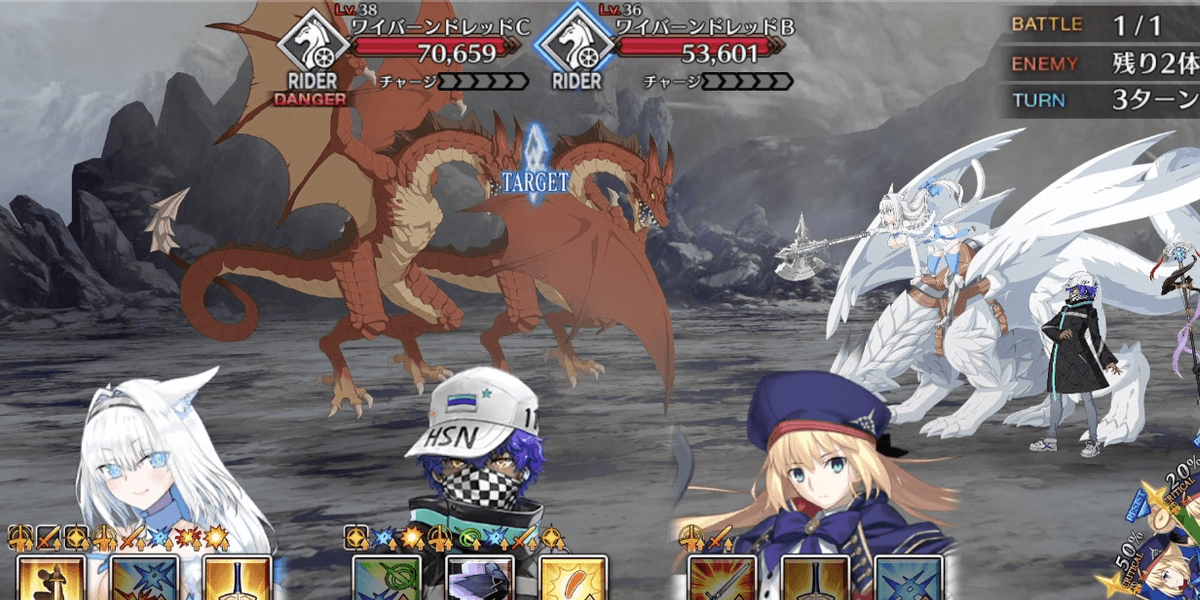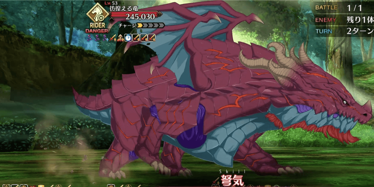 | スキル | ①自身にガッツ状態を付与(3T/1回/1,000~3,000) ②弱体無効状態を付与(3T/1回) ③毎ターンスター獲得状態を付与(3T/5個~10個) ①自身のアーツ性能をアップ(3T/20%~30%) ②バスター性能をアップ(3T/20%~30%) ③[竜]特攻状態を付与(3T/30%~50%) ①自身のNPを増やす(10%~20%) ②味方全体のクリ威力をアップ(3T/20%~30%) ③[竜]特攻状態を付与(3T/20%~30%) |