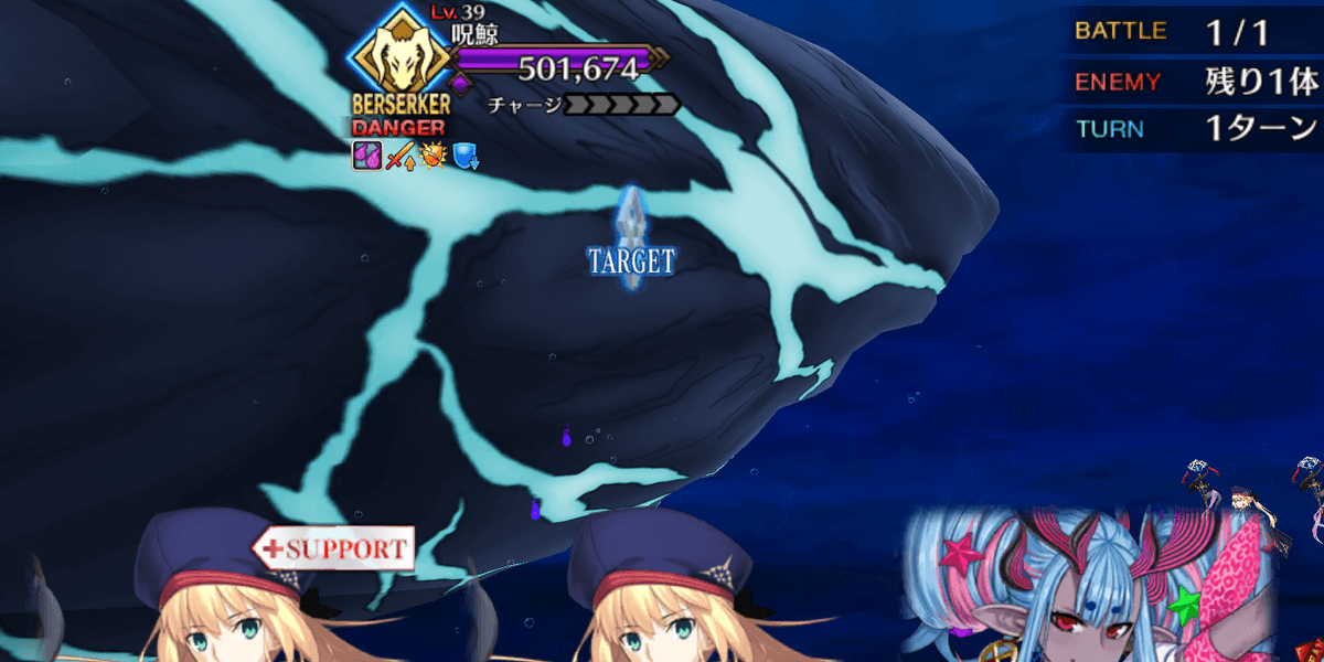 ドンキホーテは自身への火力バフと毎ターンNP獲得状態を活かし、巨人特攻宝具をメインに戦うアタッカーだ。宝具には味方全体への攻撃力アップやクリ威力アップの支援効果があり、スキルで自身のNPを犠牲にNP供給もできるため、サポーターとして使うこともできる。