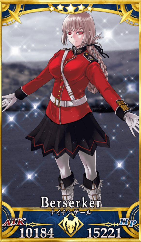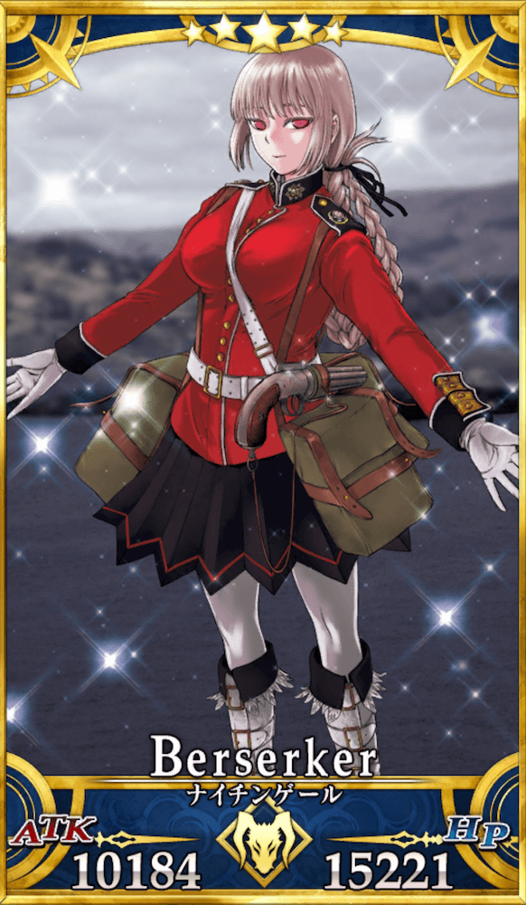 | 奉仕と献身を信条とするクリミアの天使。 信念の女。絶対に挫けることなく、誰であろうと──たとえ大英帝国の君主であろうとも、告げるべき言葉を告げる強靱な精神を有している。 異名は「小陸軍省」。たったひとりの軍隊とでも言うべき不屈性の持ち主である。 今回の現界にあたっては、その精神と狂化スキルEXが合わさった状態となっているため、(恐らくは)生前と違い「人の話を全然聞かない」。 |