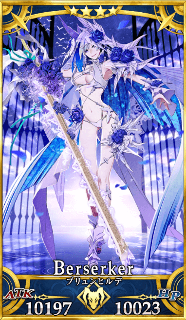 水着ブリュンヒルデは自身への攻撃と耐久性能の強化だけでなく、愛する者への火力支援もできるバランス型のアタッカー。毎ターンNP獲得によるNP効率と無敵貫通持ちの全体宝具で、宝具アタッカーとして優秀な性能を持つ。