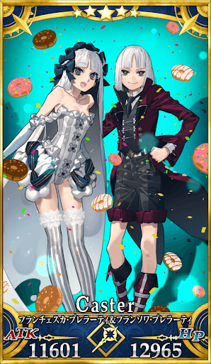 | 時代に合わせて名前を変えながら生き続けてきた存在であったが、ジル・ド・レェの狂気に惹かれ、彼の盟友となり、最終的には運命を共にする事になる。ジルが死んでからの6年間で色々と仕込んだり敵対者への復讐を行ったりした後に、刑に処され―――今では自分の記憶と知識だけを引き継いだ生贄だけが代々世界に残り続けている。それはもはや記憶と知識だけを引き継いだ別存在であるが故に、英霊として明確に残っている生前の記憶は、処刑された瞬間までとなっている。 フランチェスカは時代によって性別すら使い分けていたフランソワの別側面であり、どちらの性別が本来のものであるのかは既に意味の無いものとなっている。 ただし、男女で少し性格に違いがあり、フランソワは客観的に物事を見て楽しみ、フランチェスカは主観的に人生を楽しむ節がある。 どちらにせよ、自分の命を顧みずに全力で相手をおちょくる性格は変わらない厄介な魔物である。 |