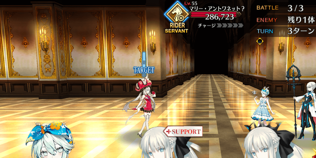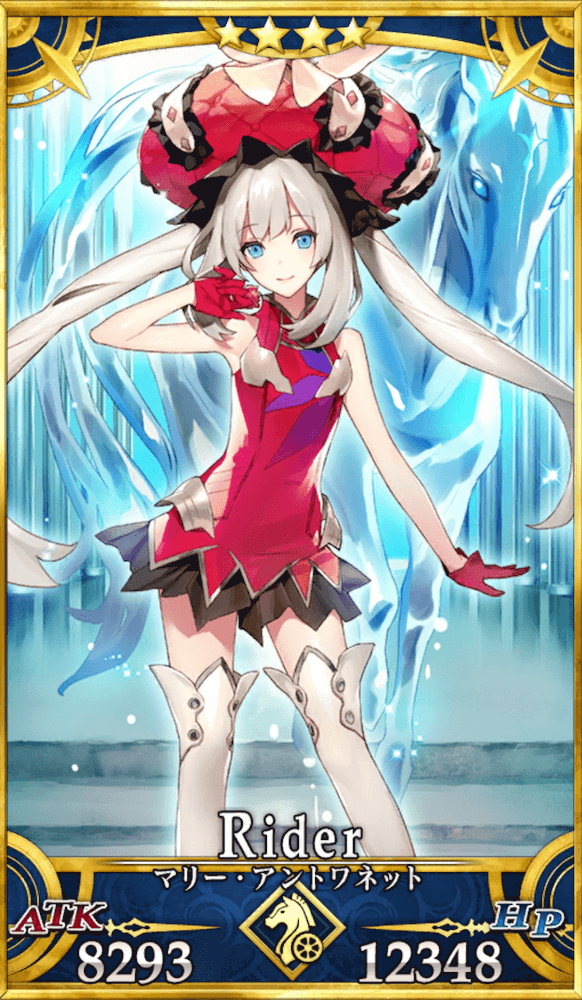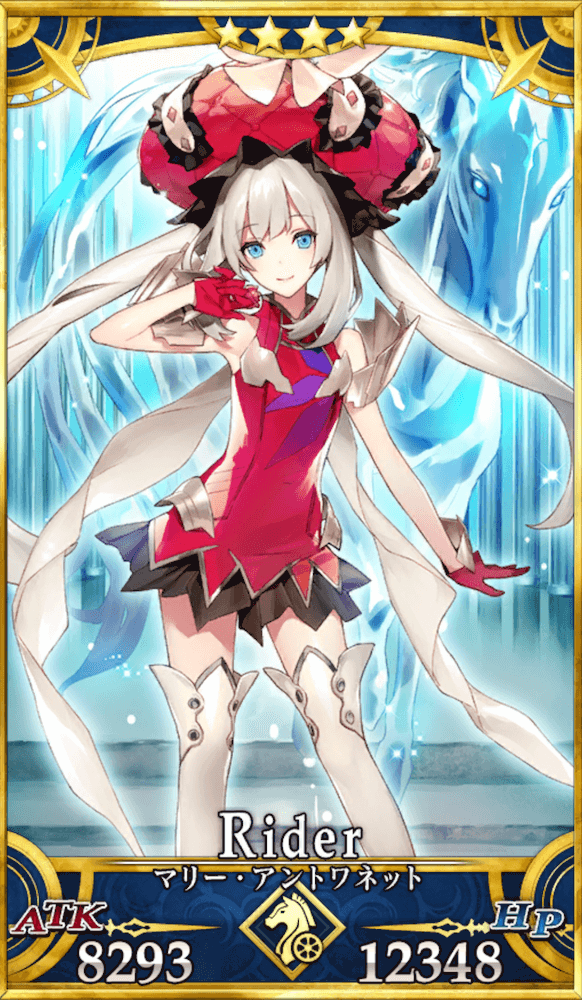 ライダーのマリーは保有スキルや宝具が生存に特化した、耐久型サーヴァントである。特筆すべきはターン制限のない3回の無敵であり、宝具やスキルのHP回復が不要なほどHPが減らない場面も多く、アタッカーとして活躍しながら味方のHPを回復する役割も持てる。