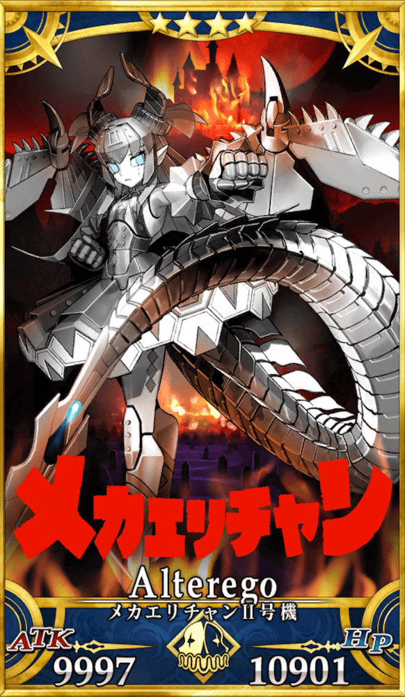 アルターエゴで攻撃有利範囲が広いメカエリチャン2号機は、高倍率の宝具威力とクリティカル威力アップを持ち、効果中は攻撃有利クラスと遜色ない大ダメージを与える。火力バフの効果は1ターンと瞬間的だが、多くのボスを撃破可能なポテンシャルを持つ。