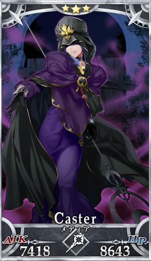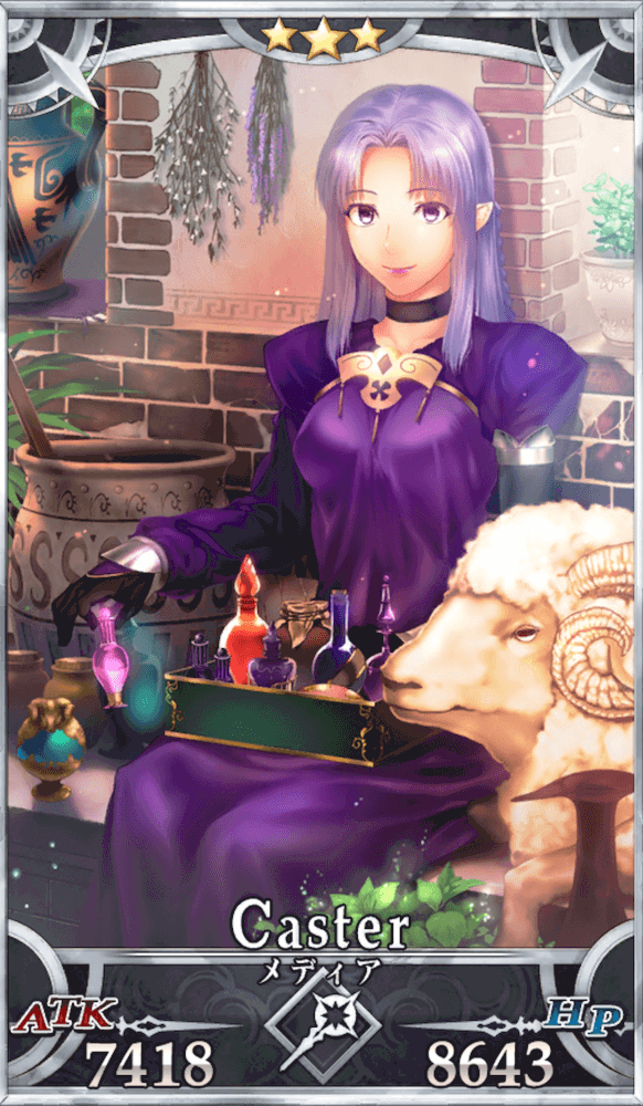 | 身長/体重:163cm・51kg 出典:ギリシャ神話 地域:ギリシャ、コリントス 属性:中立・悪 副属性:地 性別:女性 経験則から、顔のいい男は信用しない。 |