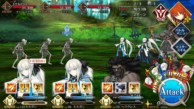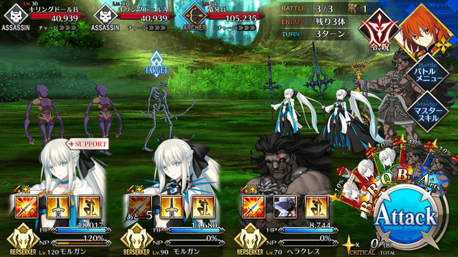 | ①Lv敵単体に強力な攻撃<450%~750%> ②強化状態を解除<-> ③OC自身のNPをリチャージ<20%~100%> |