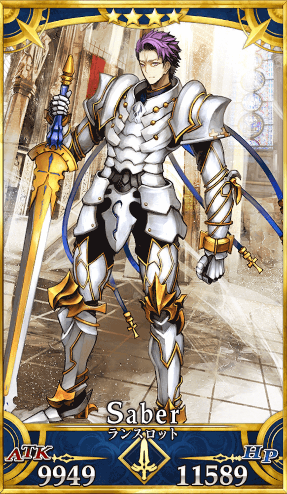 | 身長/体重:191cm・81kg 出典:アーサー王伝説 地域:イギリス 属性:秩序・善 副属性:地 性別:男性 ランスロット本来のクラスである。 |