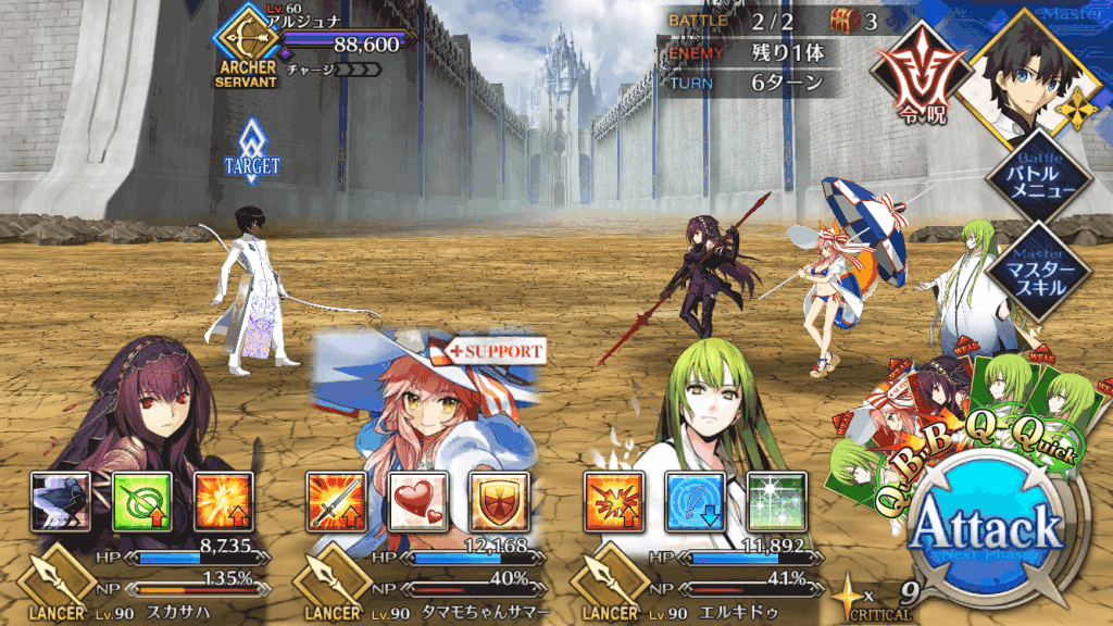 ・自身の弱体耐性をアップ(20%) ・自身のクイック性能をアップ(11%) ・自身に与ダメージプラスを付与(200) |