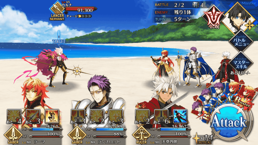 ラーマは魔性特攻攻撃ができる単体宝具と、CTの短い高倍率クリティカルバフが強みのバスターアタッカーだ。スターの用意は味方頼りになるが、星出しサポートを受ければ強力なクリアタッカーとして活躍する。