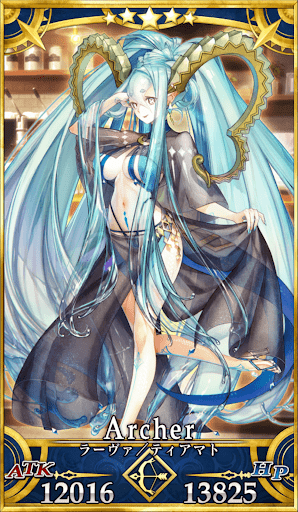 | 特性 | 星属性、混沌、夏、女性、神性、竜、超巨大、魔獣型、ケモノ科、夏モードのサーヴァント、ギルガメッシュ宝具特攻対象外 | |
