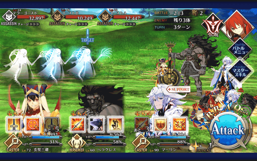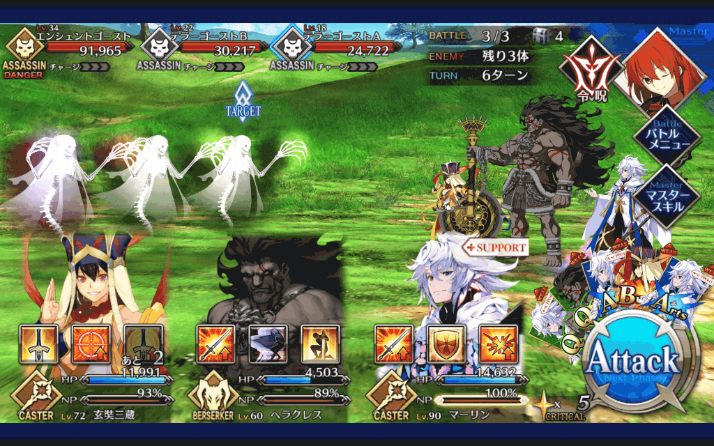 ・戦士の雄叫び[B]解放 ・味方全体のB性能アップ(3T/15~25%) ・CT 7~5 ・戦闘続行[A]→三百の奮闘[A+] ・CT1短縮 ・ガッツが重複可能に変化 ・ガッツの回復量が変化(2,000~5,000) ・ガッツ発動時、味方全体の攻撃力20%アップ(3T)追加 |