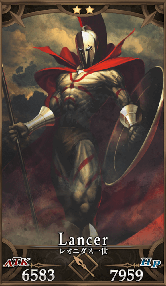 | 身長/体重:188cm・110kg 出典:史実(テルモピュライの戦い) 地域:スパルタ 属性:秩序・中庸 副属性:人 性別:男性 ディス・イズ・スパルタ! |