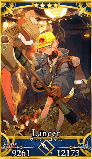 | 悩める花の芸術家、華麗にクラスチェンジ! とある作品との出会いにより労働の喜びに目覚め、 ノリと勢いで霊基変換を果たしたヴァン・ゴッホ。 絵筆をつるはしに持ち替えて、 発破とじゃがいもをいっぱい背負って、 最深へと到る志をそっと胸に秘めて、 陽気な鉱員(マイナー)の冒険がいま始まった! |