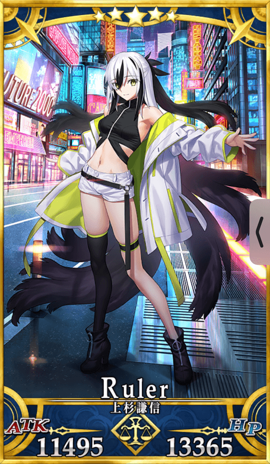 | 身長/体重:167cm・53kg 出典:史実、Fate/Grand Orde r地域:日本属性:混沌・中庸 性別:女性 「最強無敵の謙信ちゃんにお任せあれ!」 |