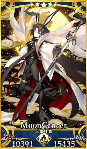 | 身長/体重:160cm・47kg 出典:不明 地域:日本 属性:混沌・善(霊基第一、第二) 中立・中庸(霊基第三) 副属性:人 性別:女性 玉兎は月に浮かぶ兎のこと。月の兎の伝承は日本のみならず、世界中で語られる逸話である。 |