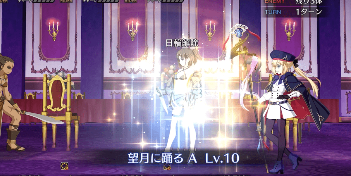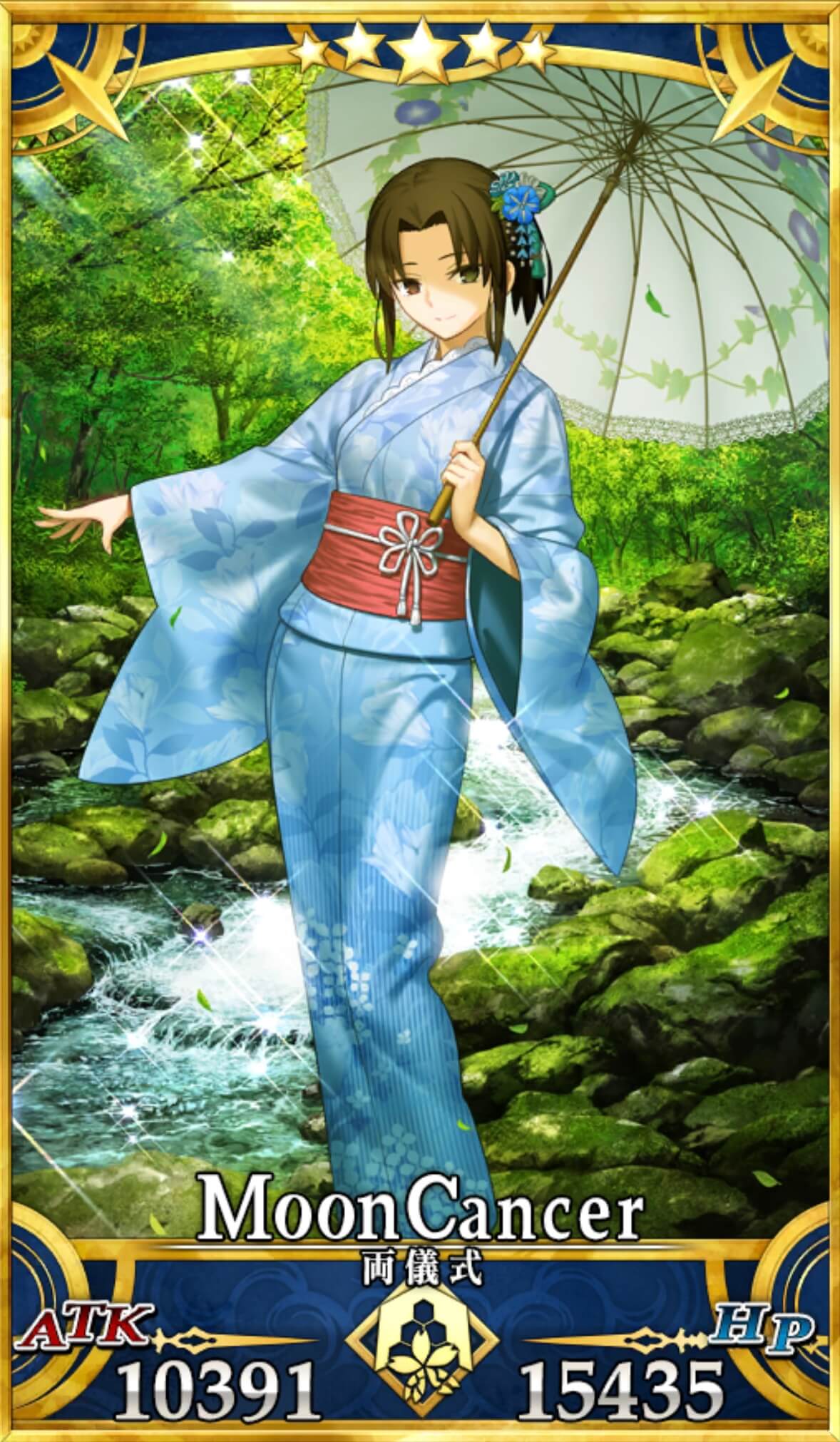・自身の弱体耐性をアップ(20%) ・自身のクリティカル威力をアップ(12%) ・自身のスター発生率をアップ(4%) ・毎ターンスター獲得状態を付与(5個) ・バトル開始時、自身を〔日輪〕状態にする(-) ・〔月下〕状態の時、クイック性能アップ(6%) ・〔月下〕状態の時、アーツ性能アップ(6%) ・〔月下〕状態の時、バスター性能アップ(6%) |
