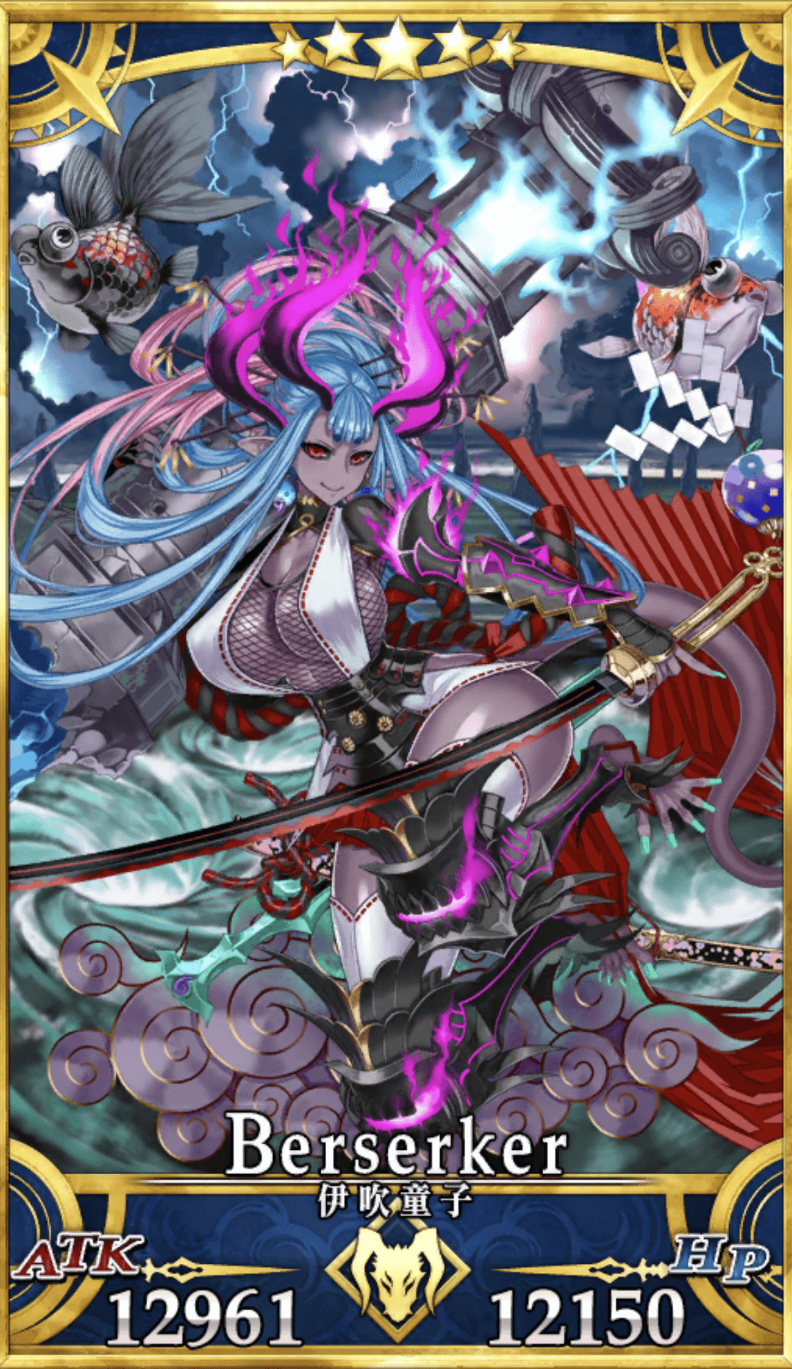 | 特性 | 天属性、混沌、夏、女性、神性、鬼、竜、蛇、魔性、巨人、魔獣型、ケモノ科、霊衣を持つ者、浮遊サーヴァント、夏モードのサーヴァント | |