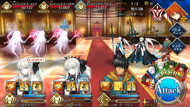 | 効率 | ・宝具のNP獲得目安は0%/体 ・Aで7.2%〜12.7%(231/457位) ・Qで3.3%〜10.0%(44/457位) ・宝具のスター獲得目安は0個/体 ・Qで5個〜9個(78/456位) ・Bで1個〜3個(56/456位) |