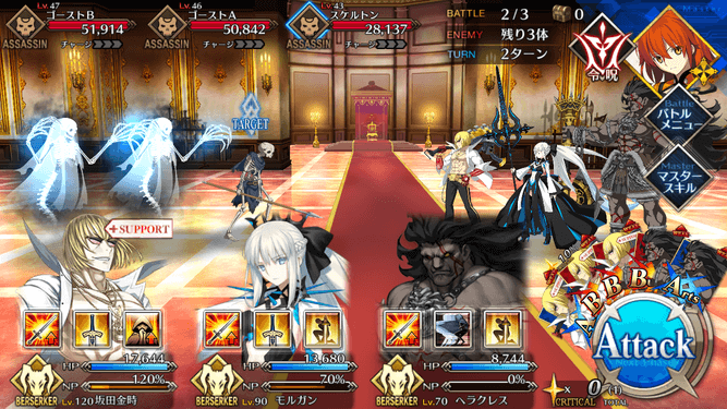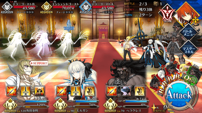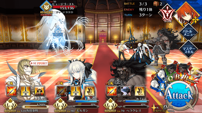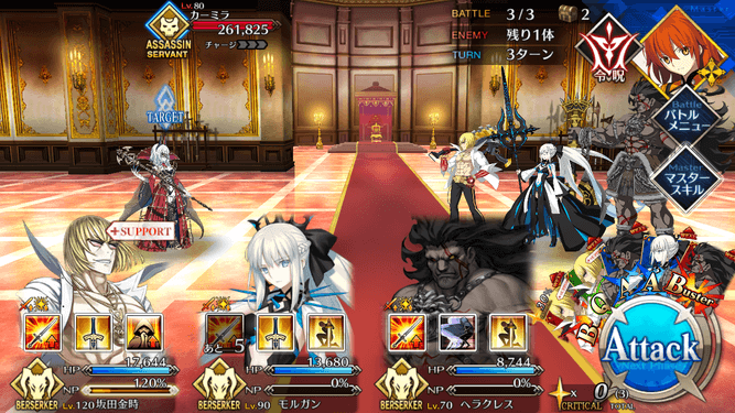 | ①味方全体の防御力をアップ(3T)<20%> ②OCクイック性能をアップ(3T)<30%~50%> ③OCバスター性能をアップ(3T)<30%~50%> ④Lv最大HPをアップ(3T)<2,000~4,000> |