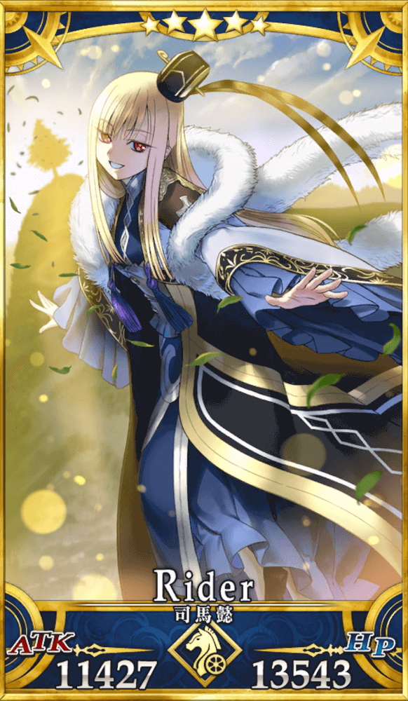 | ○宣帝の指揮:A 軍師系サーヴァントに与えられるスキル「軍師の指揮」が変化したもの。 司馬懿は権力の簒奪者であり、後に晋の高祖宣帝として追号されたことから、軍師としてのスキルと皇帝としてのスキルが融合している。 |