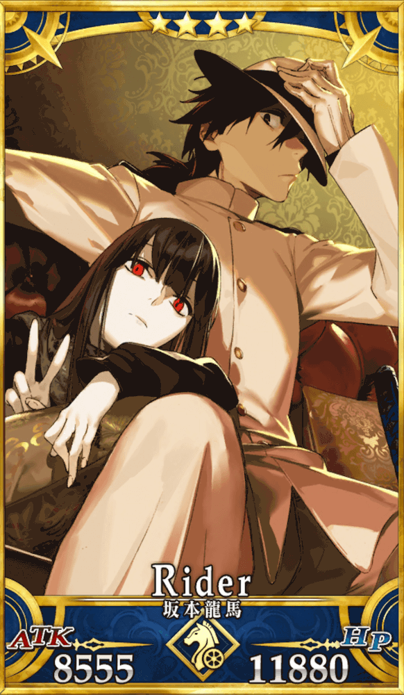 保有スキルはすべて味方全体を強化する内容であるため、坂本龍馬はサポート型のライダーといえる。また、バフやクラス特性によりNPを稼ぎやすいため、アーツ単体宝具の連打も視野に入り、チャージ減少による敵の妨害も可能だ。