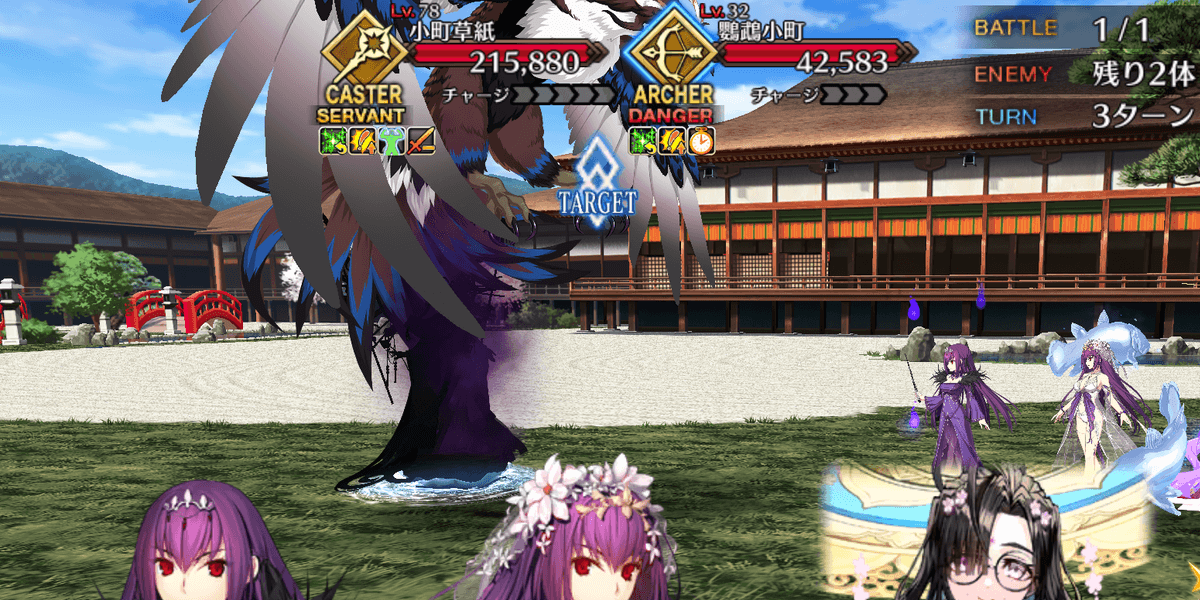 小野小町は複数の特攻で、特定の相手に強く出れるクイック全体宝具持ちアタッカーだ。特攻はスキルで付与するタイプであり、通常攻撃もダメージを伸ばせるだけでなく、特定カード攻撃時にNPや回避などを付与できる状態にもなるため、積極的に攻撃に参加させたいタイプといえる。