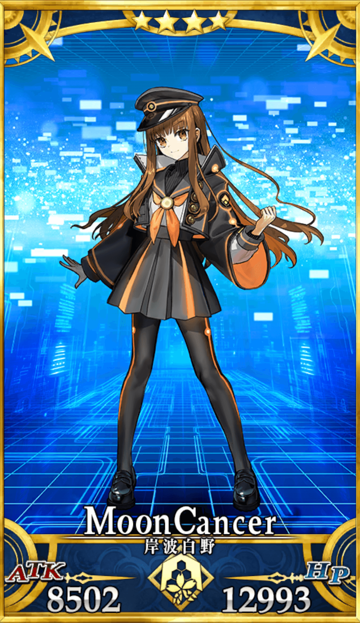 | ○単独行動:EX サーヴァントとして召喚されてはいるが、召喚以前から霊基の体なので召喚された時点ですでに独立した生命体として活動できる。 現世に留まるための魔力供給、要石などは必要ではない。 ○コードキャスト:A 電脳世界における魔術式。プログラミング技術。 はじめは素人同然だったが、今では卓越した術者となっている。 ○月のレガリア:EX 聖杯戦争、その勝者に与えられる王権。 もともとはスキル『戦術眼』だが、幾たびもの戦いを経て、周囲からこう呼ばれるようになった。 フォーリナー以外のすべてのサーヴァントクラスに対して特攻を持つ。 |