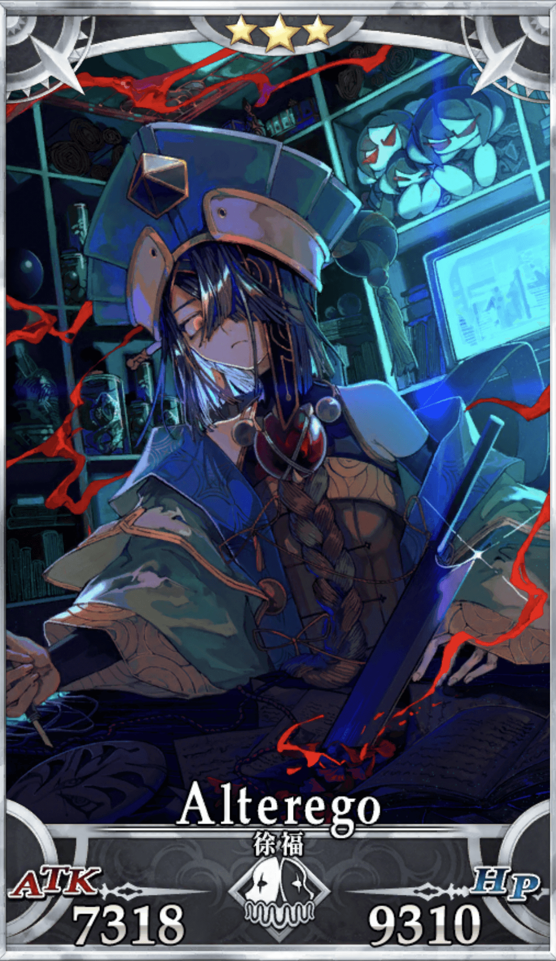 | ○人物像 男性として記述があるが女性。 始皇帝に仕えていたが、ある日たまたま虞美人と遭遇。 虞美人の魅力に参ってしまったが、彼女の悩み にも気付いてしまい、不老不死である彼女を 殺害する手段を模索し始める。 そのために、不老不死の霊薬を探すと始皇帝に具申。 日本へと渡って一つの村落を築く。 人体実験用の人形や、記憶消去の結界を張るなど、 道士としての技量は一流だったようだが、 彼女の代では不死殺しの手段に到達できず、 やむなく次代へと託す。 二千年近い研鑽を経たものの、村落そのものが 衰退したことで、不死殺しの手段を得るには 至らなかった。 そしてさらに年月が経って、 徐福はサーヴァントとして召喚され、 村落を中心に特異点を形成。 特異点修正のためにやってきた虞美人のために、 今度こそ不死殺しの手段を完成させようと 暗躍するが……。 一夏の夢を、彼女と共に。 |