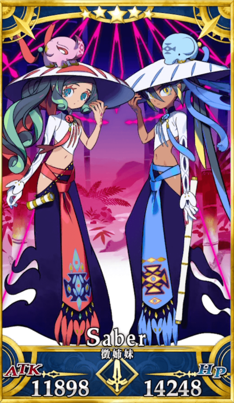 徴姉妹(FGO)の性能評価を掲載。宝具やスキル、強い点や弱い点をわかり易く解説している。Fateキャラのボイス(セリフ)や最終再臨イラスト、元ネタ情報も掲載しているので、FGO(フェイトグランドオーダー)の徴姉妹(ハイ・バ・チュン/徴側,徴弐/なかよしセイバー)育成の参考にどうぞ。