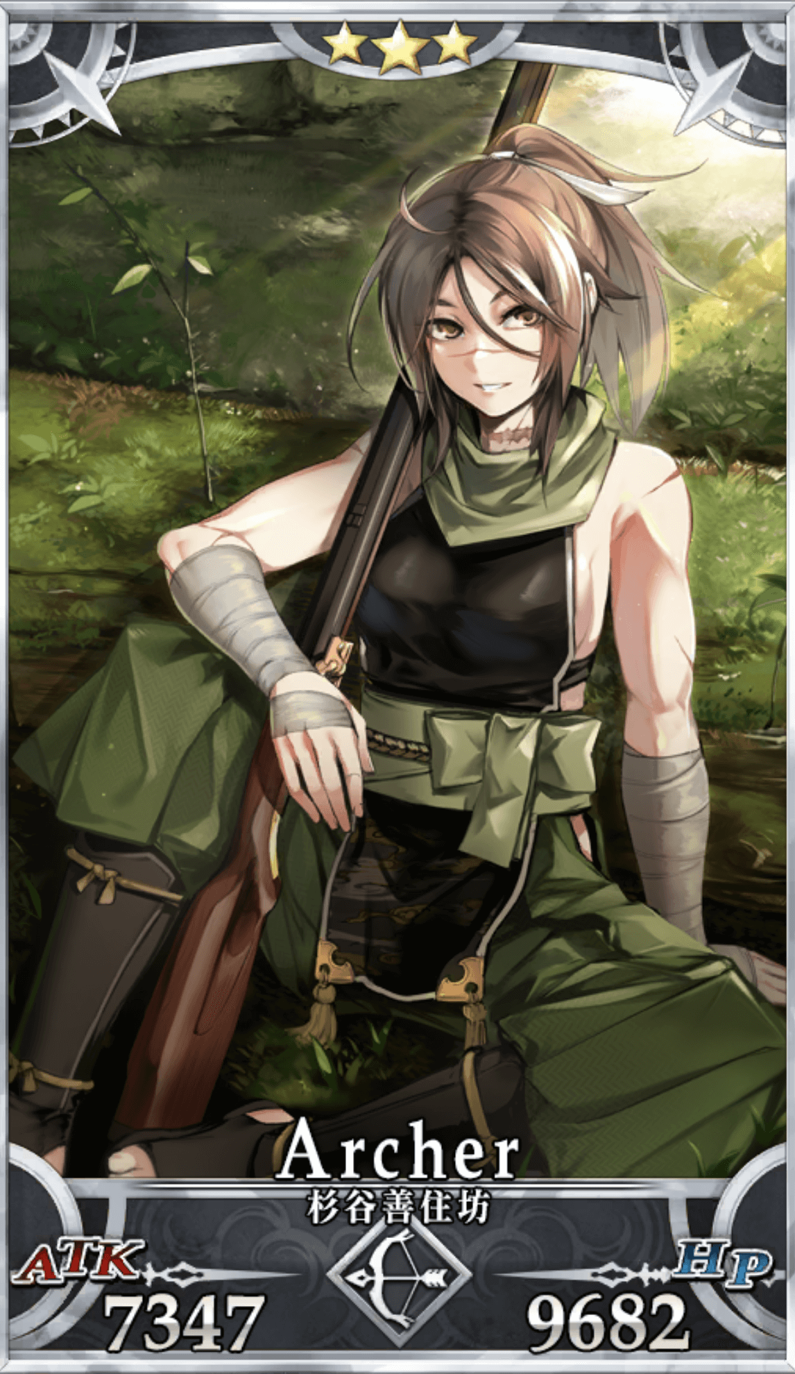 杉谷善住坊は大器晩成型のアタッカーである。自身のスキル効果とターン経過で、宝具やクリティカル一撃の火力を著しく上昇させられる。1ポチで高火力を出せるといった手軽さはないが、極めれば高レアにも匹敵する一撃を期待できる。