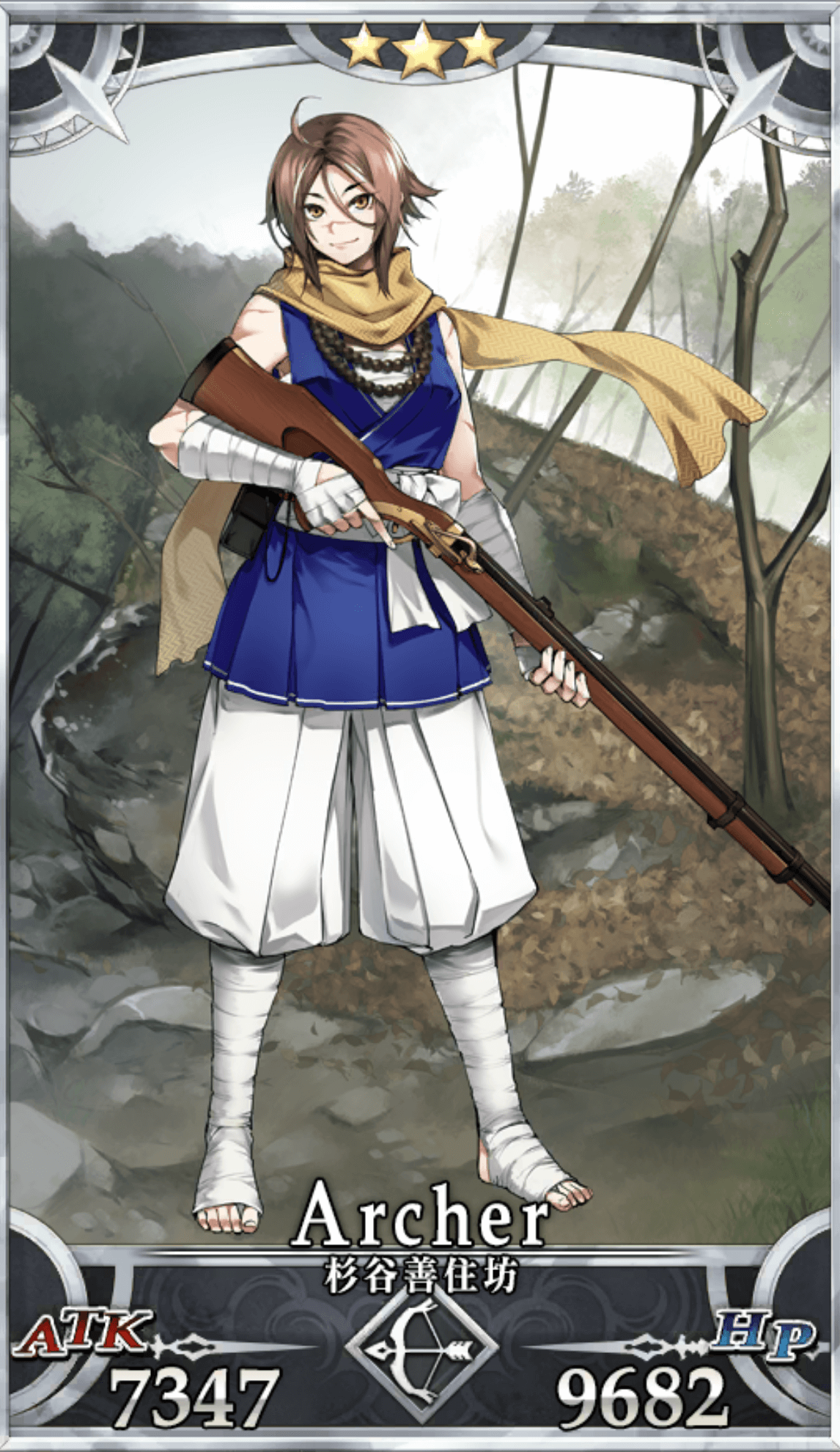 杉谷善住坊(FGO)の性能評価を掲載。宝具やスキル、強い点や弱い点をわかり易く解説している。Fateキャラのボイス(セリフ)や最終再臨イラスト、元ネタ情報も掲載しているので、FGO(フェイトグランドオーダー)の杉谷善住坊(すぎたにぜんじゅうぼう)育成の参考にどうぞ。