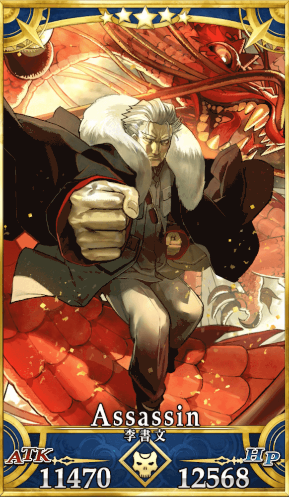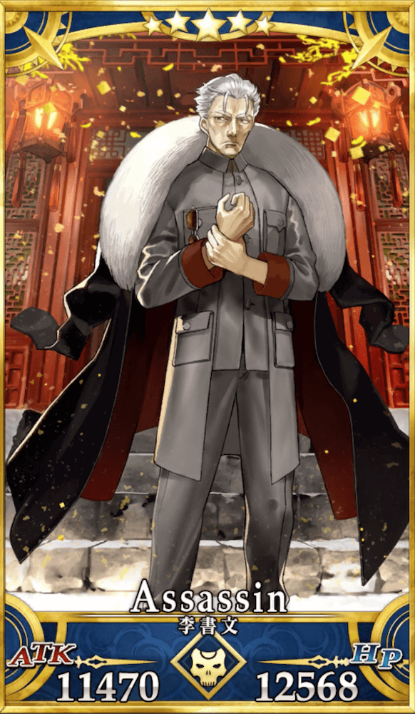 戴冠戦アサシンのメインアタッカーとして必要な要素をすべて揃えており、1ターン周回のアタッカー候補になれる。戴冠戦アサシンでは、李書文の持つ即死付与、回避スキル、人特攻バフがいずれも有効的に機能する。