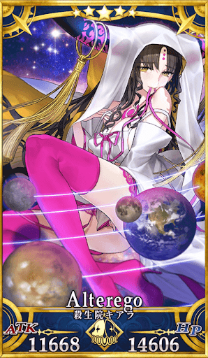 ・千里眼(獣)[D]→[D+++] ・敵単体のA耐性ダウンが追加(1T/20~30%) ・CTが短縮(9~7)→(8~6) ・五停心観[A]→[A+] ・敵全体の強化状態解除が追加 ・CTが短縮(9~7)→(8~6) ・宝具ランク[EX]→[EX] ・宝具威力が強化(450~750%)→(600~900%) ・HP回復が強化(2,000~6,000)→(5,000~10,000) ・女神神生[EX]→魔性変生[B] ・全体に善特攻付与追加(20~30%/3T) ・全体にNP付与追加(10~20%) ・全体にOC段階1引き上げ付与追加(1回/3T) ・自身のHP減少大デメリット消滅 |